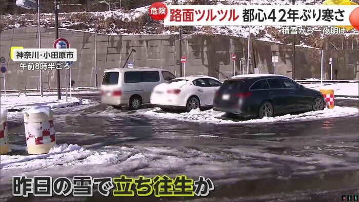 一方、神奈川・小田原市では、8日の雪で立ち往生したとみられる車が路上に止められたままになっていた。