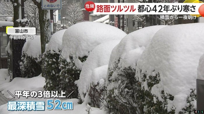 9日朝、日本連投は今期最強寒波で厳しい冷え込みとなり、東京都心はマイナス3.2度と、2月として42年ぶりの寒さを記録した。8日は各地で積雪が増え、事故が多発。東京・中央区ではランボルギーニがパトカーに衝突して警察官2人が重傷を負い、一夜明けた9日、警視庁は逃げていた中国籍の男を危険運転致傷などの疑いで逮捕した。