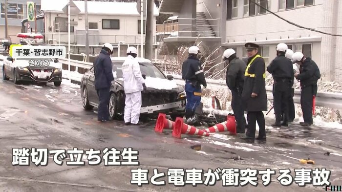 また、千葉・習志野市の踏切では、雪の影響により立ち往生したとみられる車に電車が衝突。