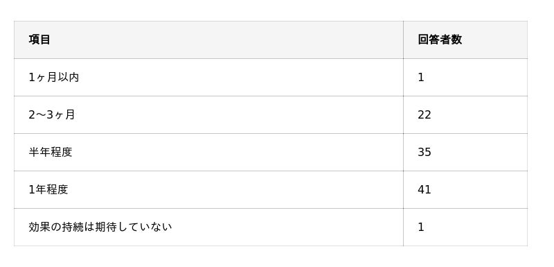 - エアコンクリーニング後の効果の持続は「1年程度」は続いてほしいと考える人が最も多い。