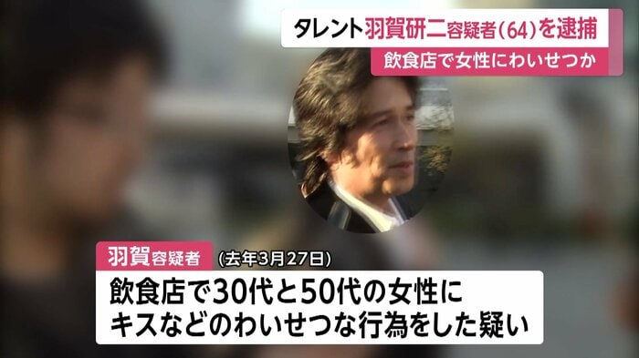 羽賀容疑者は去年3月27日、県内の飲食店で30代と50代の女性に対し、キスをしたり体を触るなどのわいせつな行為をした疑いがもたれている。
