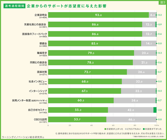 - 選考過程で「企業説明会」を受けた内定者、9割以上が「志望度が上がった」と回答(図3)