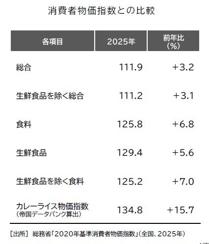 「カレーライス物価指数(2026年基準改定)」調査―2025年通年