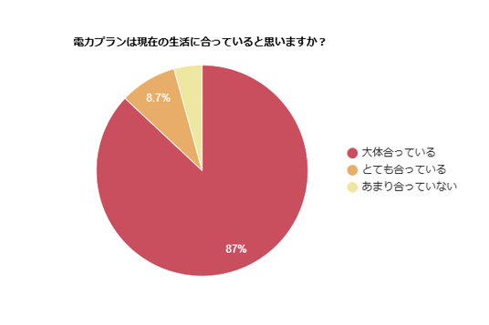 - 過半数以上の人が現在の生活に電力プランが合っていると回答