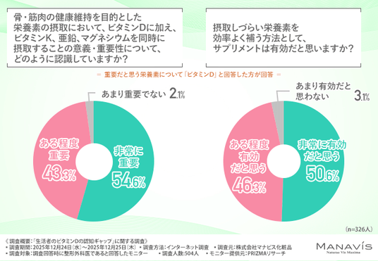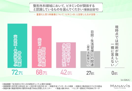 そこで今回、株式会社マナビス化粧品(https://www.manavis-cosme.co.jp/)は、整形外科医を対象に、「生活者のビタミンDの認知ギャップ」に関する調査を実施しました。