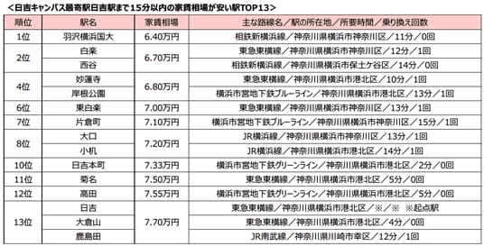株式会社リクルート(本社:東京都千代田区、代表取締役社長:牛田圭一、以下リクルート)が運営するニュースサイト『SUUMOジャーナル(スーモジャーナル)』は、住まいや暮らしに関するさまざまなテーマについて調査を実施し、結果をご紹介しています。新年度からの大学進学に向けて、キャンパスに近い住まいを探す人もいるのでは? そんな人の参考になるように、慶應義塾大学で学部数が多い、日吉キャンパス(神奈川県横浜市)と三田キャンパス(東京都港区)に通いやすく、家賃相場が安い駅を調査しました。各キャンパスの最寄駅である、日吉駅まで電車で15分圏内、または田町駅・三田駅・赤羽橋駅いずれかまで電車で20分圏内に位置し、家賃相場が安い駅のランキングを紹介します。また、学生時代にランクインした駅周辺に住んだことのある人の口コミもお伝えします。