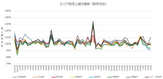 各地域の売上伸長率は、四国地方が最も高く前年対比106.3%となった。
