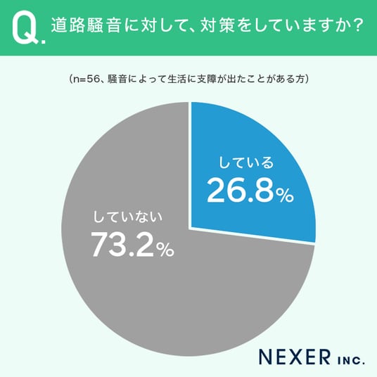 次に、道路騒音によって生活に支障が出たことがあると回答した人に、騒音への対策をしているかを聞いてみました。