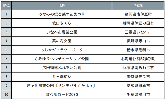 「じゃらん 春らしさを感じる花絶景ランキング」