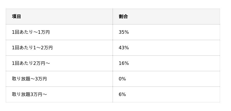 次に「1回あたり~1万円」という回答が35%で多い結果でした。