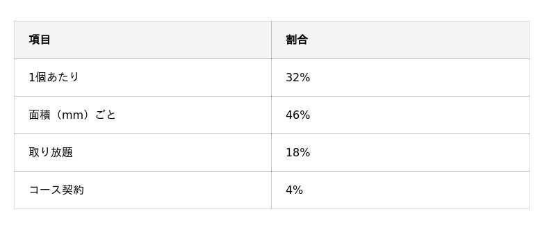- 料金プランは「面積(mm)ごと」が46%で最多