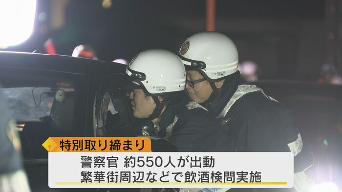 福岡県内で一斉に実施された飲酒取締り。警察官約550人が主要幹線道路や繁華街周辺などで一斉検問を行い、酒気帯び運転の疑いで2人が現行犯逮捕されるなど、合わせて9人が摘発された。