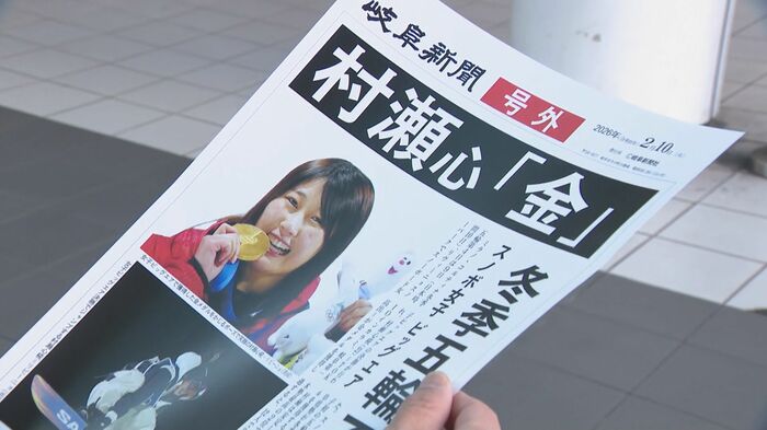 村瀬選手の金メダル獲得をうけ、地元・岐阜市の名鉄岐阜駅前では10日朝、号外が配られました。