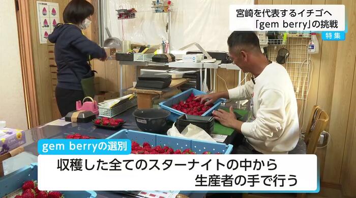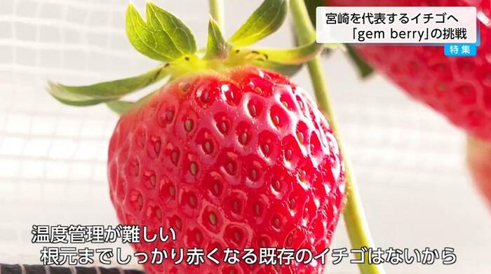 「スターナイト」というイチゴの品種をご存じだろうか。甘みと酸味のバランスに優れ、張りのある食感で、根元までしっかり赤くなっても柔らかくならないという特徴がある。宮崎県で開発された。この「スターナイト」の中から、見た目の完成度が高いものを選りすぐった「ジェムベリー(gem berry)」が誕生した。生産者は「今までにないイチゴ」に戸惑いつつも、温度管理の難しさなどと向き合い、高い品質を維持するための挑戦を続けている。