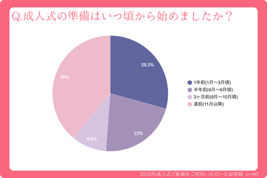 1.2026年新成人の準備開始時期は「1年前」と「直前」の二極化傾向に!