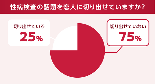 調査の結果、性病検査について「恋人に話題として切り出せていない」人は全体の75%にのぼりました。