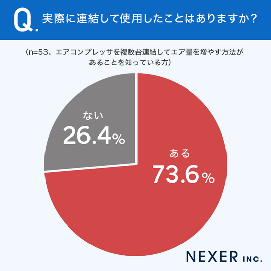 エア量不足を感じたことがある方に、エアコンプレッサを複数台連結してエア量を増やす方法を知っているかを調査しました。