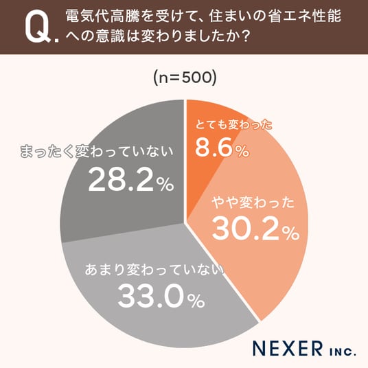 次に、電気代高騰を受けて住まいの省エネ性能への意識が変わったかを調査しました。