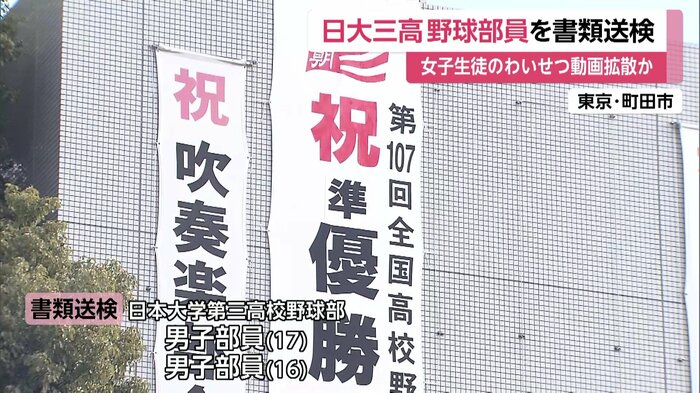 強豪校として知られる日本大学第三高校野球部の男子部員2人が女子生徒にわいせつな動画を送らせ拡散するなどした疑いで書類送検された。