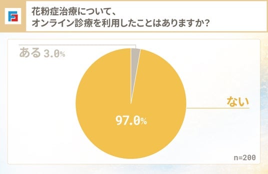 花粉症治療におけるオンライン診療の利用経験は3%