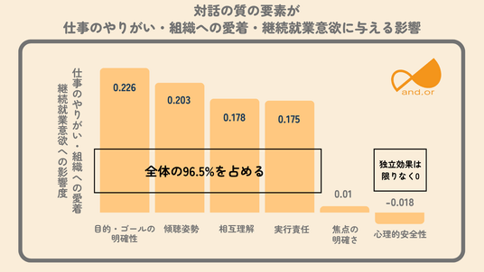 対話の質の要素が、仕事のやりがい・組織への愛着・継続就業意欲に与える影響
