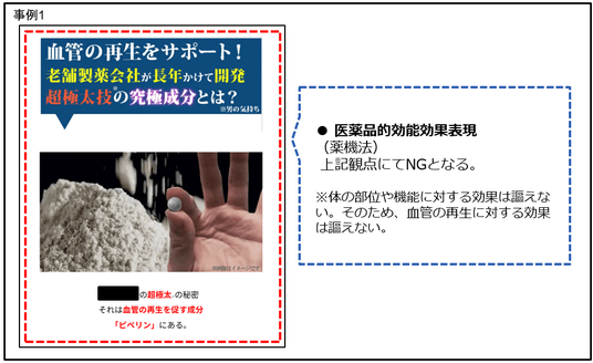 医薬品に該当する商材について、医薬品等適正広告基準に違反している表現
