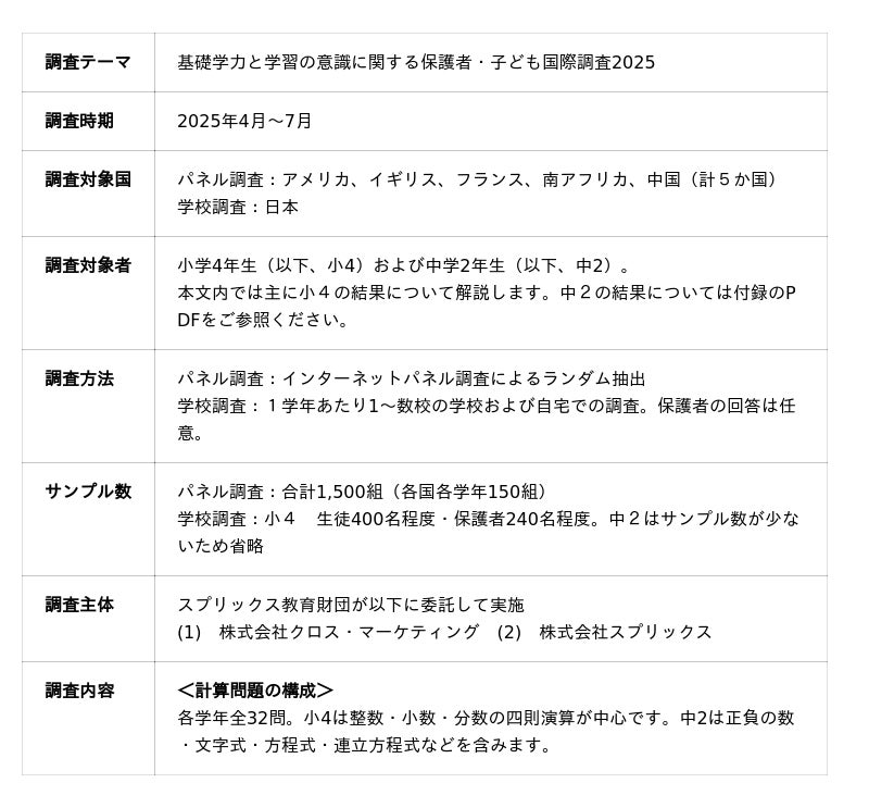 スプリックス教育財団 基礎学力と学習の意識に関する保護者・子ども国際調査2025