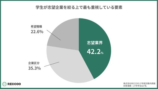 1.「業界」の先入観を書き換え、個別のインサイトに深く刺すRECCOOの過去の調査では、学生の4割以上がまず「業界」で企業を絞り込むというデータもあり、人気業界以外の企業はそもそも優秀層の視界に入りにくくなっているのが現状です。これまで多用されてきた「上位校だからこのメッセージを送る」といった、学群で一括りにしてスカウト文を作成する手法は、もはや通用しにくくなっていると言えます。