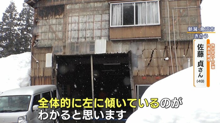 佐藤さんによると、2月2日の夜に屋根に降り積もった大量の雪が落下。その重さと衝撃で、建物が傾き危険な状態になってしまったといいます。