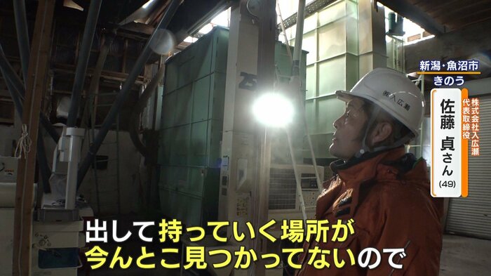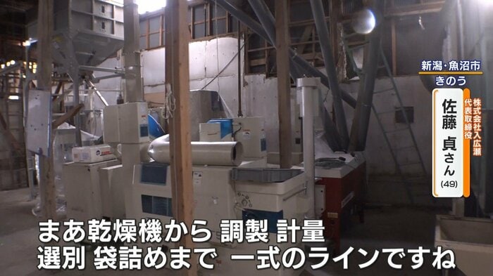 新潟・魚沼市でコメの生産・販売を行っている株式会社「入広瀬」の佐藤さん。見せてくれたのは、コメの脱穀や袋詰めなどの作業を行ったり、コメを保管している建物です。