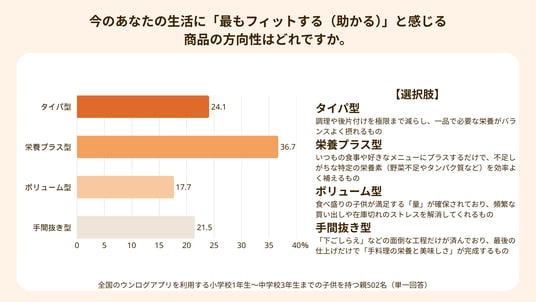 ・将来ニーズ:多忙な投資家(親)が求める商品、1位は「栄養プラス型」