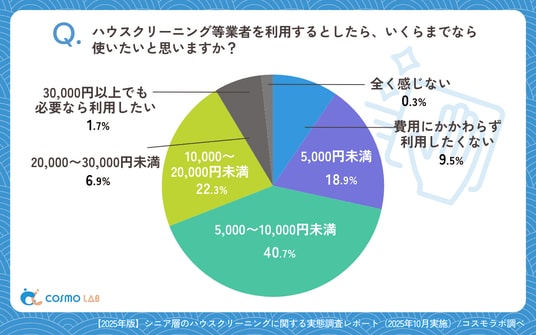 ハウスクリーニング業者に掃除してほしい部分は「エアコン内部」(75.1%)が最多で、価格は「5,000~10,000円未満」(40.7%)が最多でした。負担感は「とても負担」(40.7%)が最多。