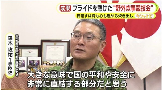 第34普通科連隊長 兼 板妻駐屯地司令の鈴木攻祐1等陸佐は「被災された人や災害現場で活動している人たちの心や気持ちも温められるような温かくておいしい食事を提供することは、大きな意味で国の平和や安全に直結すると思う」と強調する。