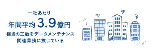 ・一社あたり年間平均3.9億円相当の工数を、社内データの整備などデータメンテナンス関連業務に投じている
