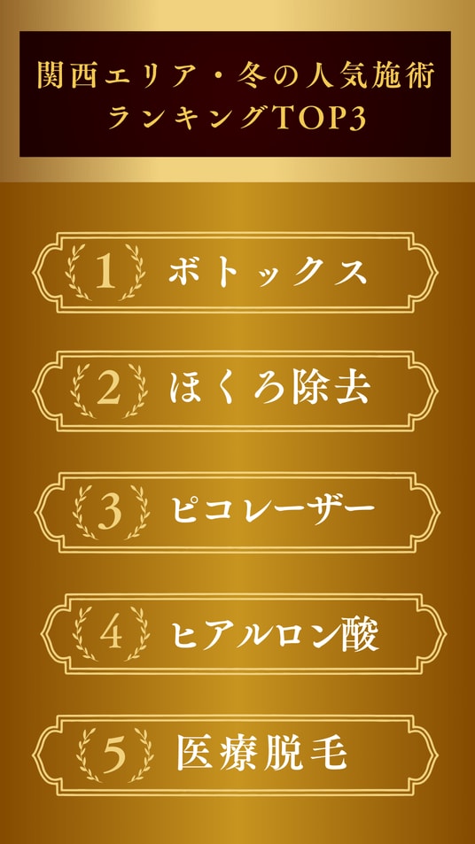 今回のランキングからは、“ダウンタイムが少ない施術”と“肌質改善・印象改善を目的とした治療”の両方が、冬の関西エリアで強く支持されている傾向がうかがえます。