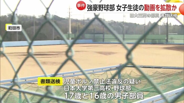 児童ポルノ禁止法違反の疑いで書類送検されたのは、東京・町田市にある日本大学第三高校野球部の17歳と16歳の男子部員。