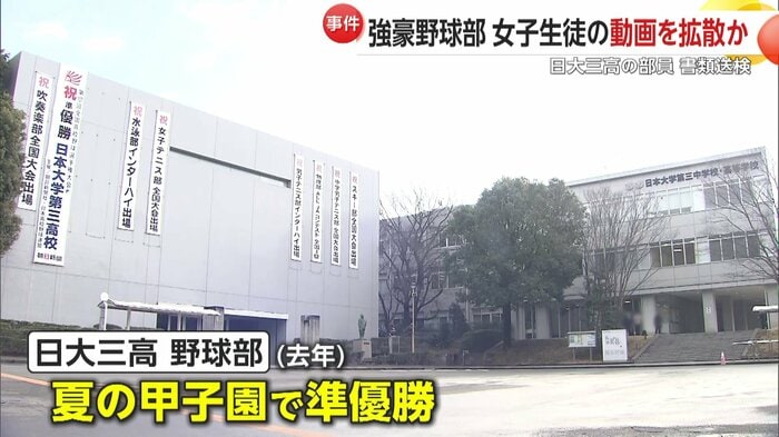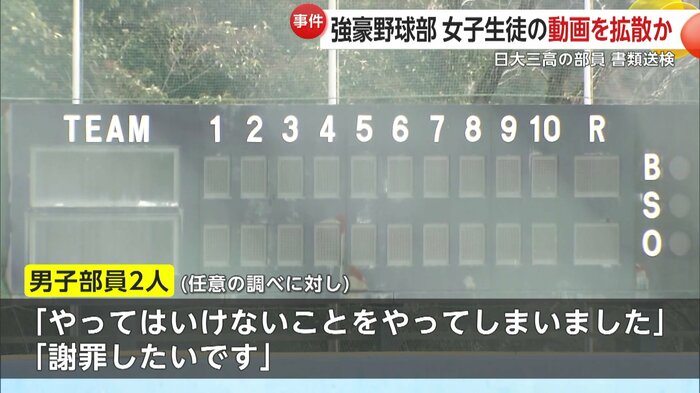 強豪校として知られる日本大学第三高校野球部の男子部員2人が女子生徒にわいせつな動画を送らせ拡散するなどした疑いで書類送検された。