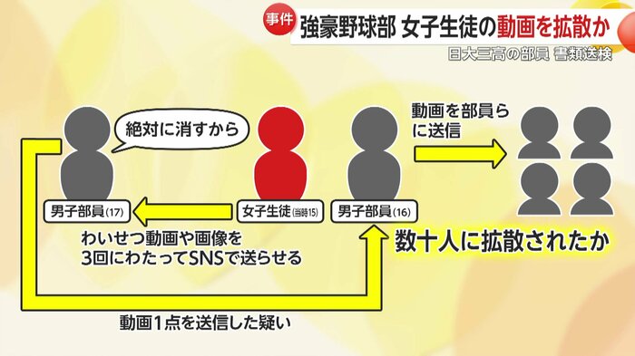 さらに16歳の男子部員は、受け取った動画を他の部員らに送信。動画は、部員、数十人に拡散されたとみられている。