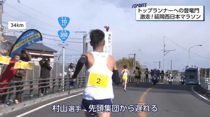 しかし、ペースメーカーが外れたあとの34キロ、村山選手は先頭集団から遅れ始め、差が開いてきた。