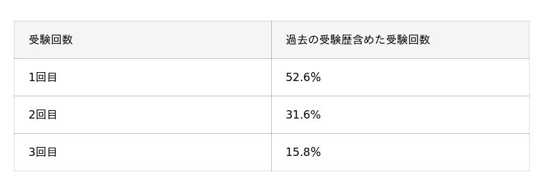 貸金業務取扱主任者試験合格者の受験回数