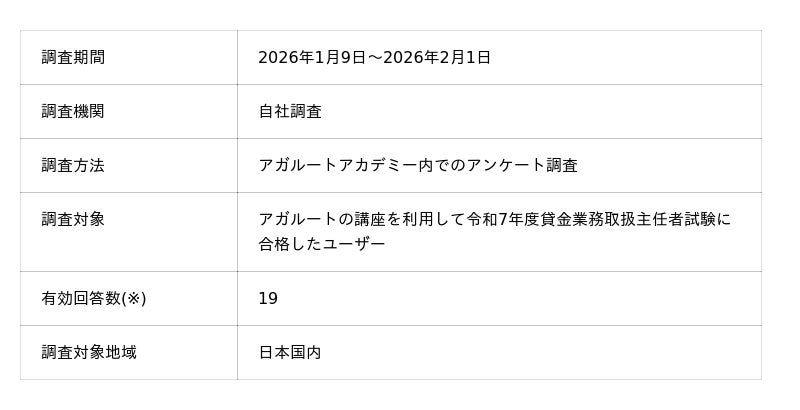 貸金業務取扱主任者試験に合格した人のアンケート調査概要