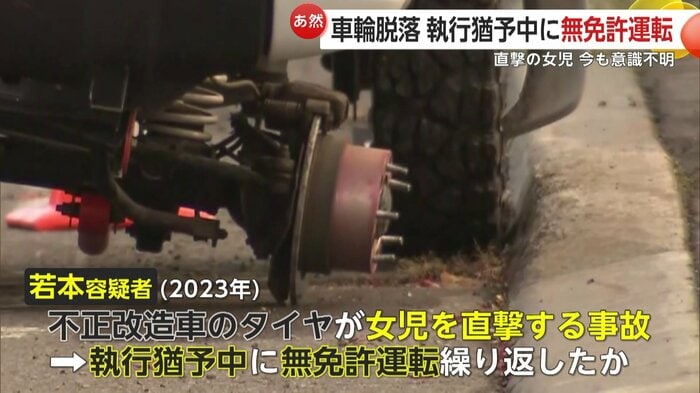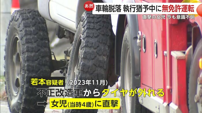 2023年、不正改造車から外れたタイヤが女の子を直撃する事故を起こし、有罪判決を受けた若本容疑者。