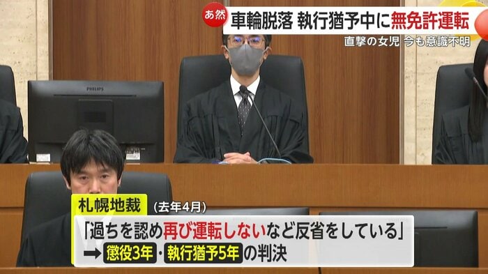 過失運転致傷などの罪に問われた裁判で、札幌地裁は若本容疑者に対し「過ちを認め、再び運転しないなど反省をしている」として懲役3年・執行猶予5年の有罪判決を言い渡していた。