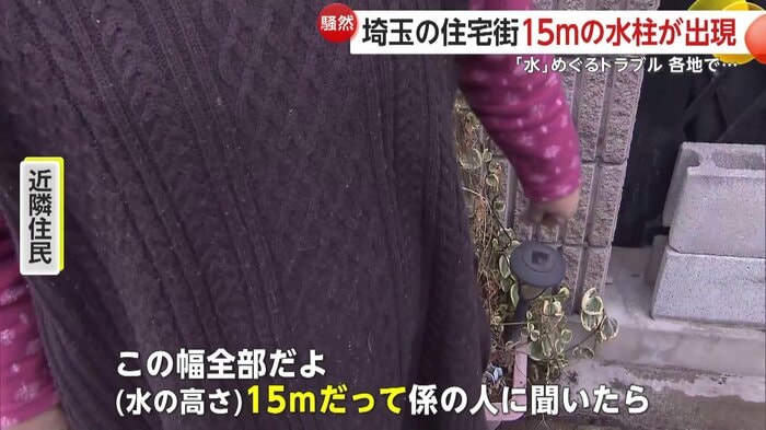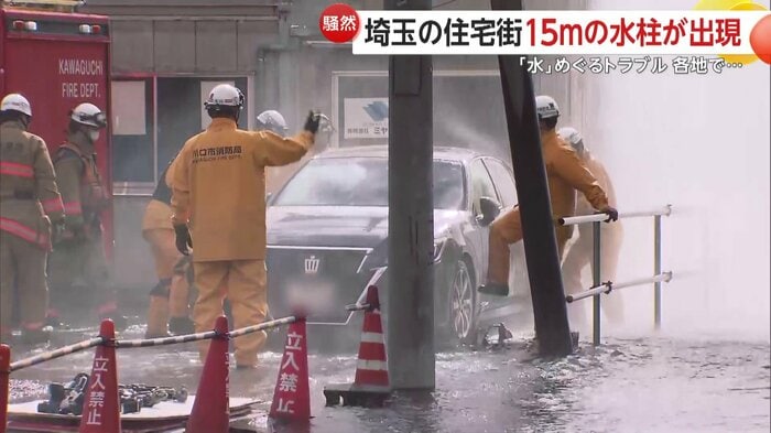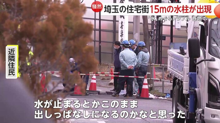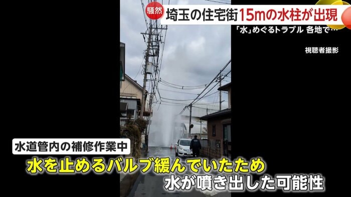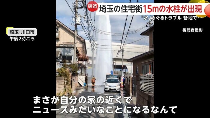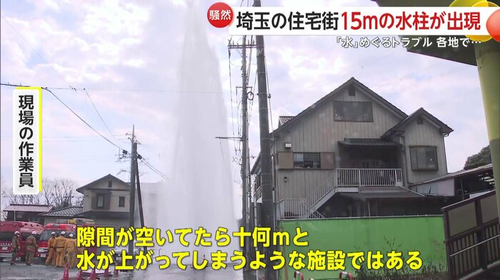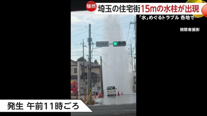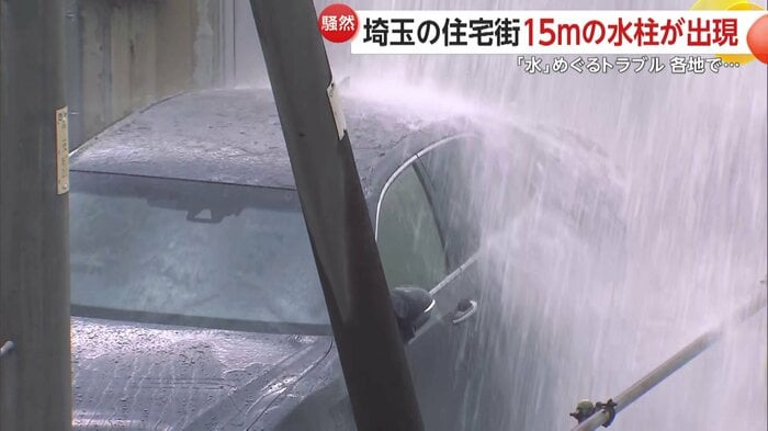 水柱の高さは、電柱や民家の屋根を超えるほど…埼玉県でマンホールから水が噴き出すトラブルがあった。