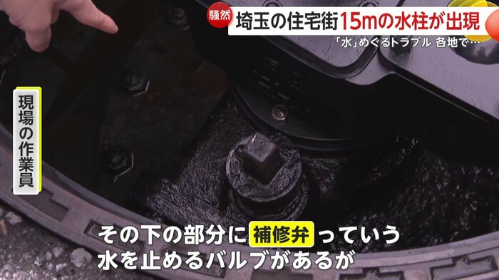 水道管内の補修作業中に、本来 水を止めるために締めるはずのバルブが緩んでいて、水が吹き出した可能性があるという。