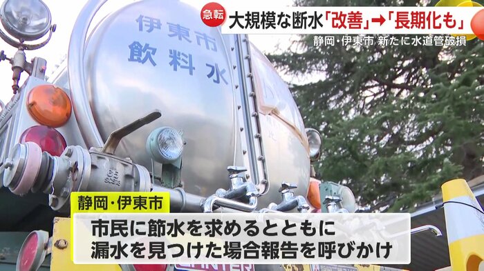 伊東市では、市民に節水とともに、漏水を見つけたら報告してほしいと呼びかけている。