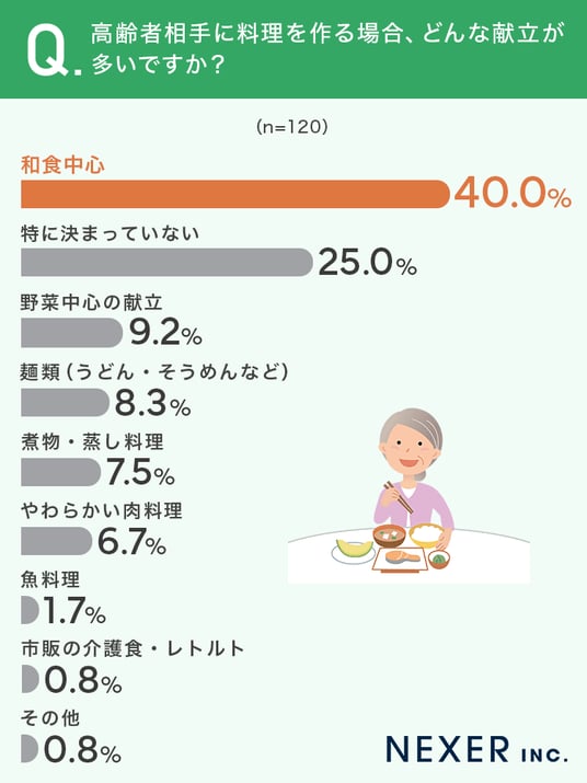 最後に、高齢者に料理を作る場合、どのような献立が多いかを聞いてみました。