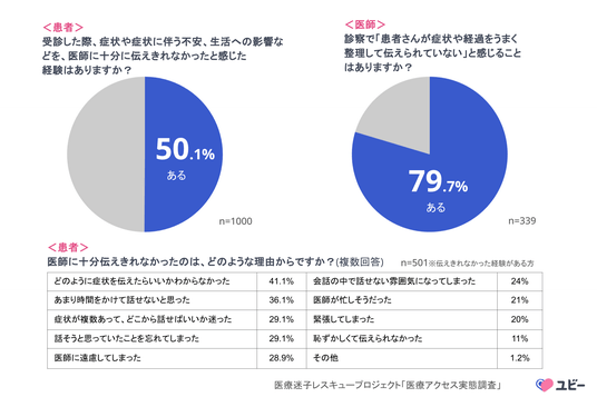 【2人に1人が診察室で「伝えられない」悩み、医師も8割が「患者が伝えられていない」と実感】