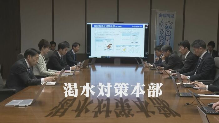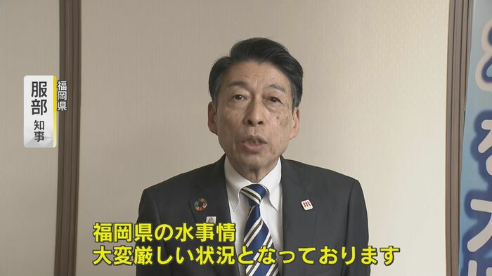 服部誠太郎・県知事も「福岡県の水事情、大変厳しい状況となっております。節水のご協力、何とぞよろしくお願い申し上げます」と訴える。