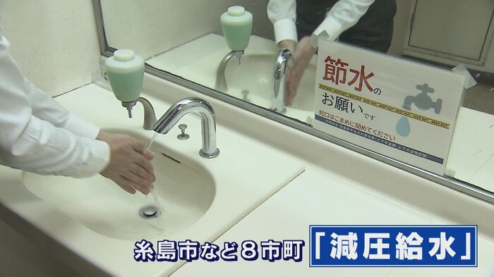 糸島市を含む福岡県内の8市町では、水道の水の勢いを弱める減圧給水が実施されている。